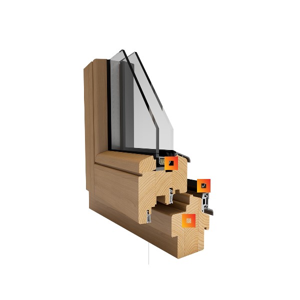 Choisissez l’essence de bois qui correspond à votre style et personnalisez votre fenêtre en ajoutant un intercalaire warm-edge ou un croisillon décoratif. Le profilé standard de 68 mm peut également être équipé d’un triple vitrage pour un confort thermique renforcé.