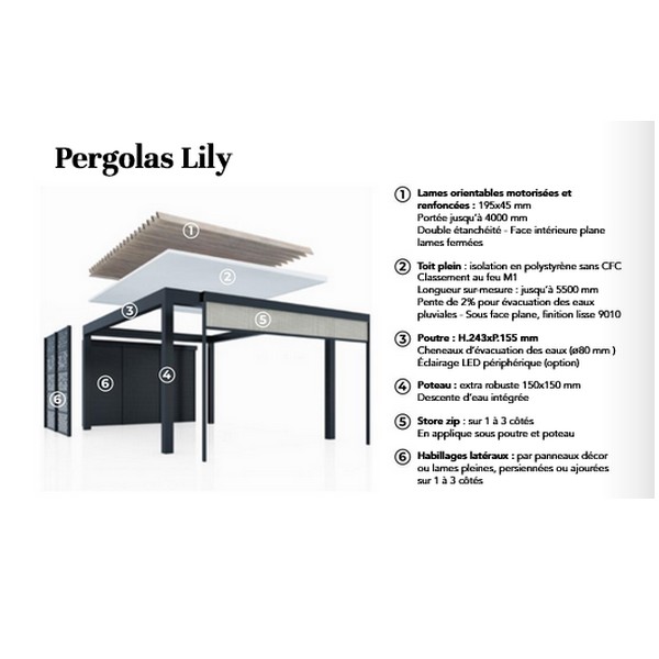 Toitures disponibles : lames orientables, toiture pleine, toiture mixte